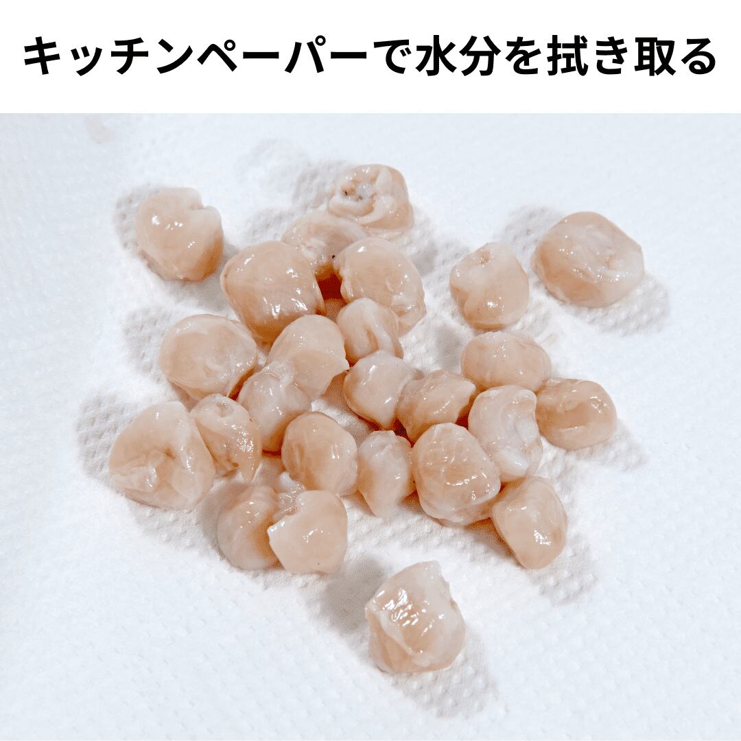 解凍しためぼうは、キッチンペーパー等で水分をとってから調理するようにしてください。