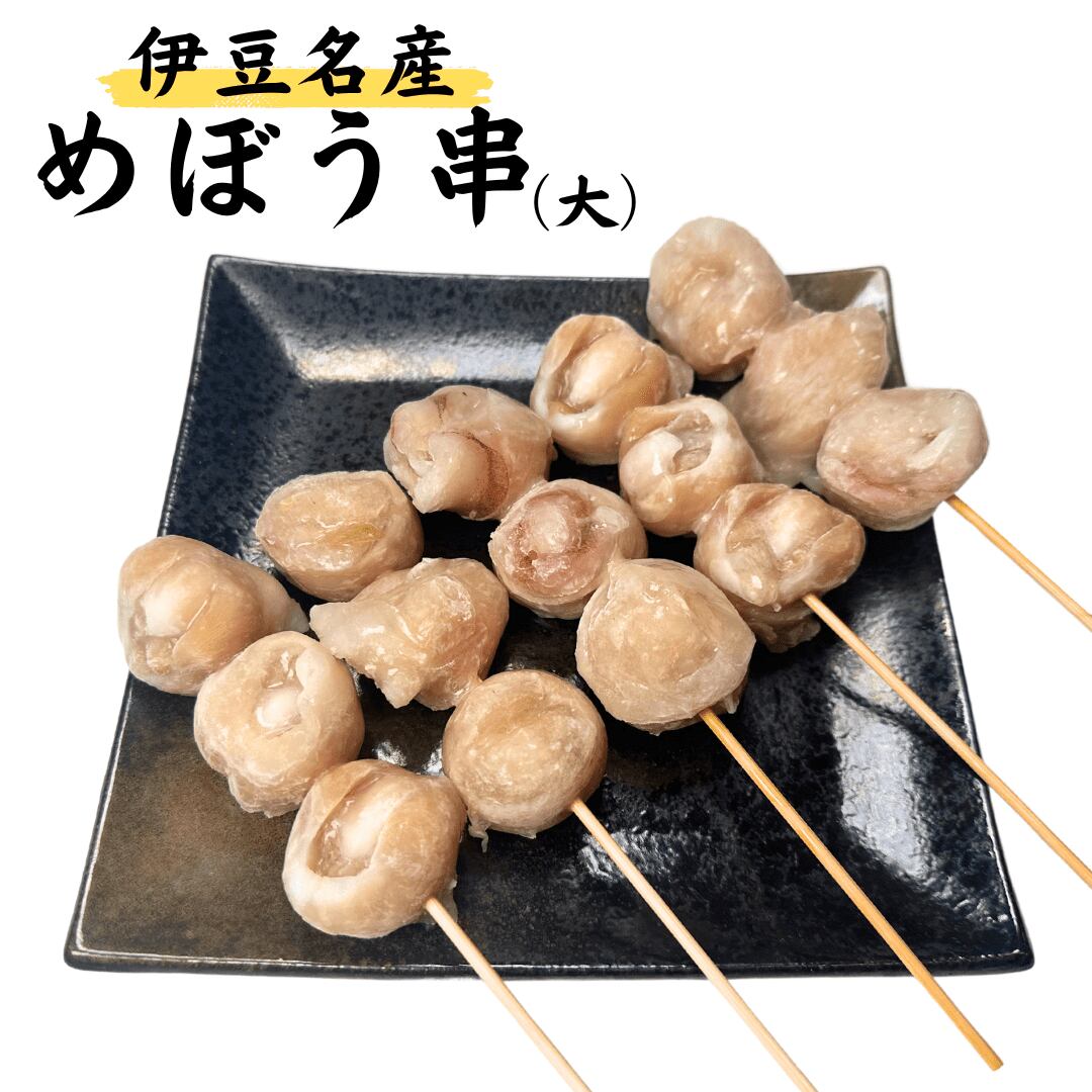 あの人気番組でイカ大好き芸人たちに紹介された「めぼう串」です。「めぼう」とは、イカの口の部分。1杯のイカに1個しかない希少な部位で静岡県東伊豆名産として知られています。